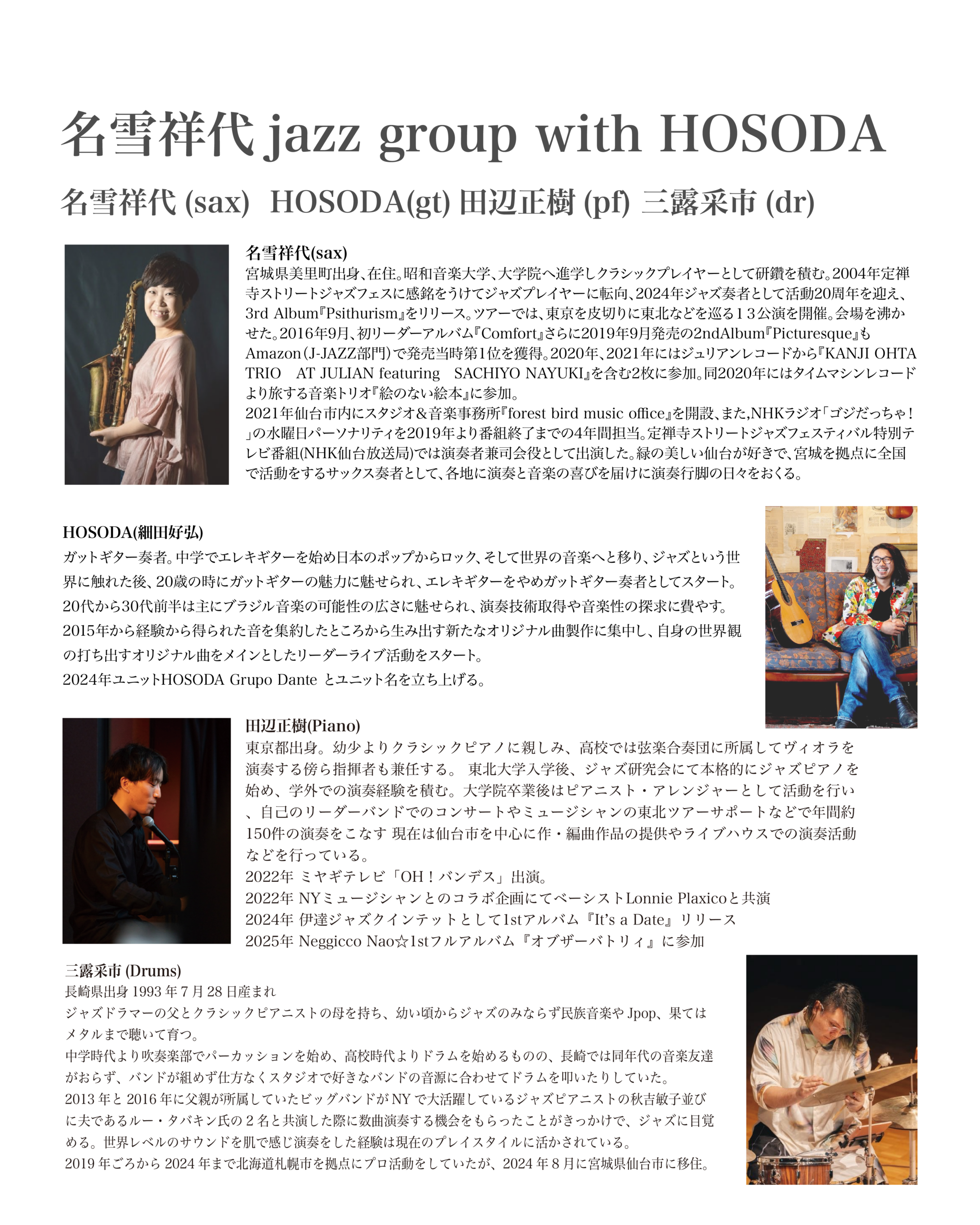 名雪祥代Jazz Group with HOSODA 平泉/はだ氷室LIVE